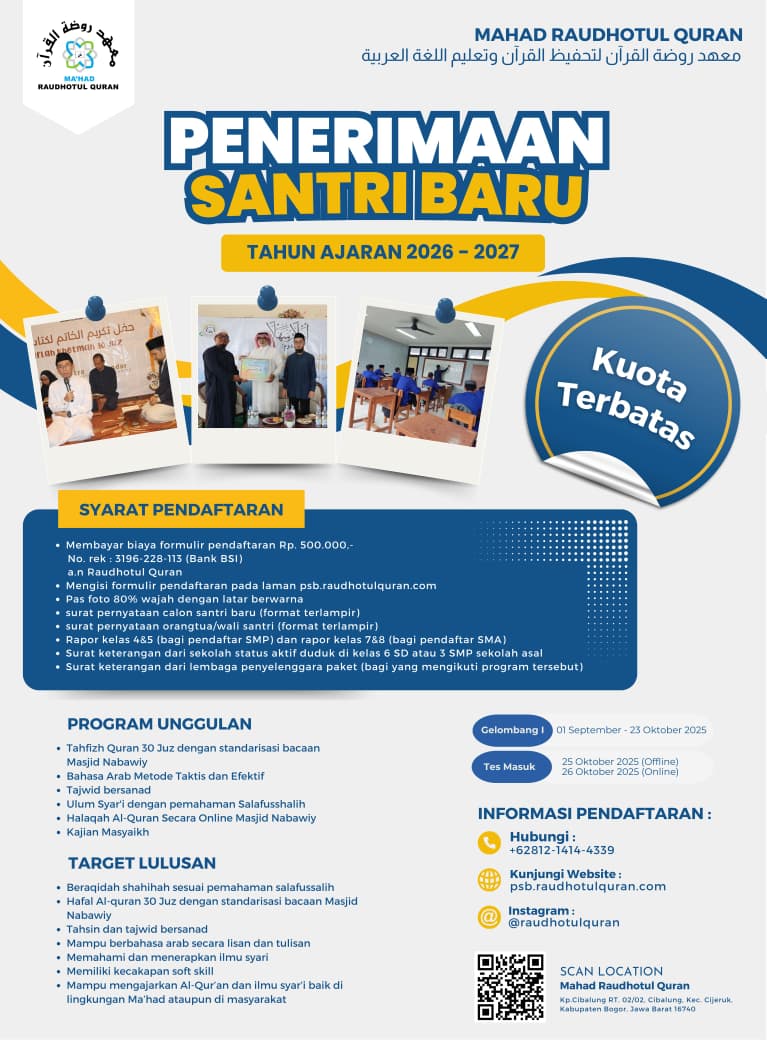 Read morePENERIMAAN SANTRI BARU MRQ TAHUN AJARAN 2026/2027